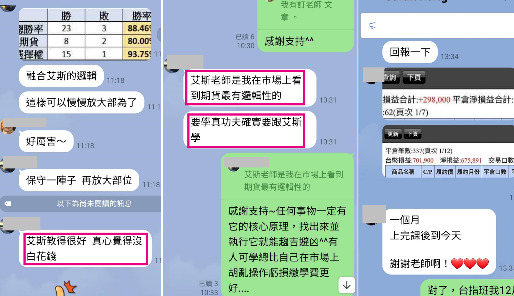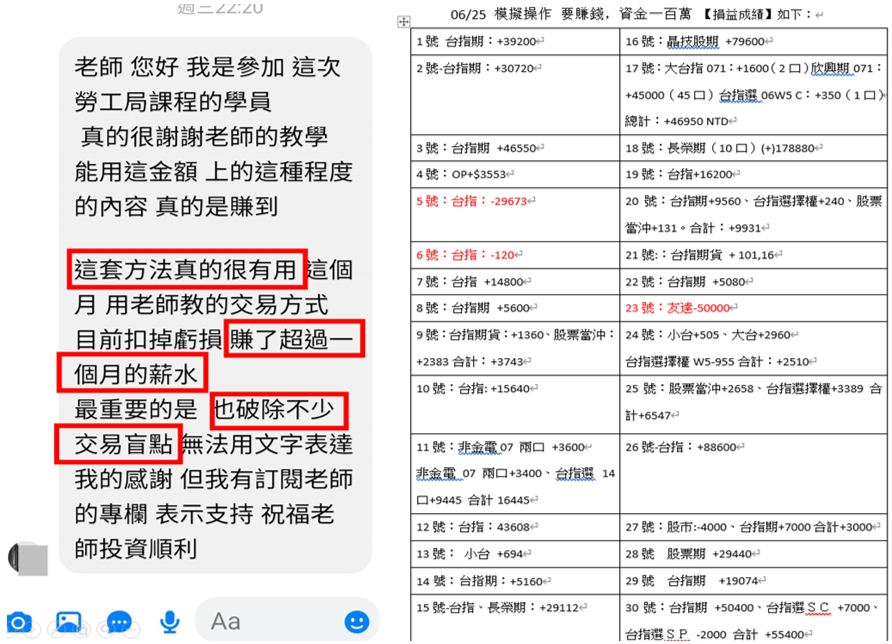 ✔ 已培訓出多名百萬操盤手學員、且在台灣各期貨商業內均有其學員