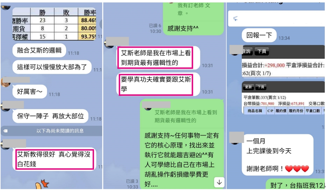 已培訓出多名百萬操盤手學員、且在台灣各期貨商業內均有其學員