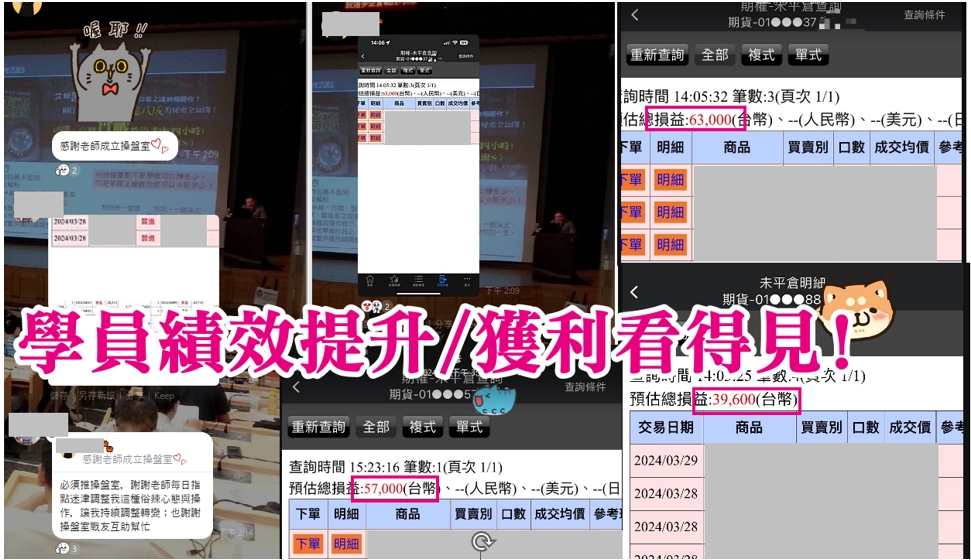 ✔ 已培訓出多名百萬操盤手學員、且在台灣各期貨商業內均有其學員