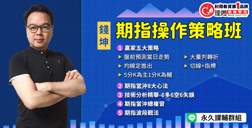 期指操作策略班◆直播 11/11(二)、11/12(三)、11/18(二)、11/19(三)、11/25(二)、11/26(三) 19:00-21:30,共6堂 NT$12,000 |