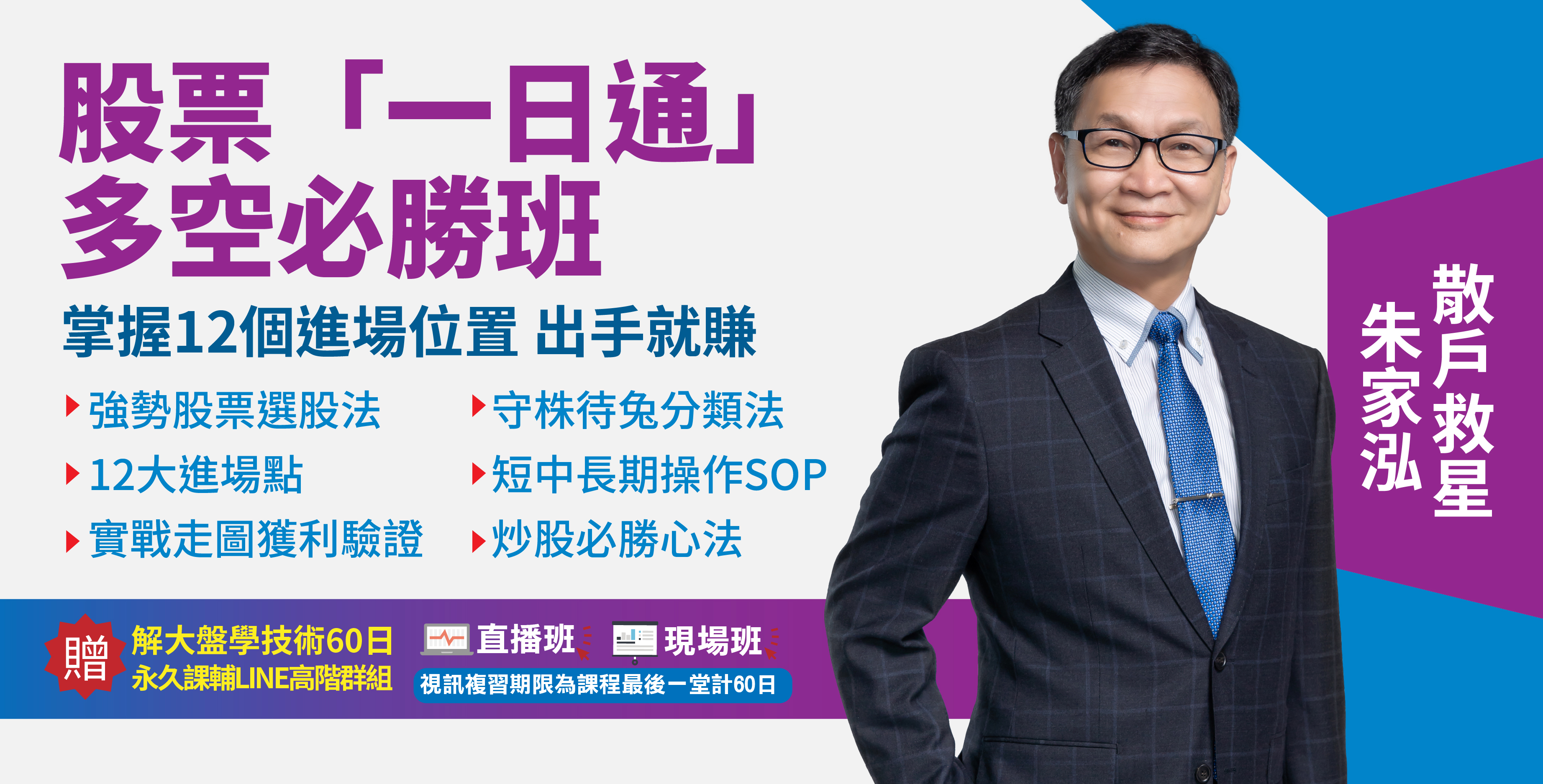 股票「一日通」多空必勝班◆直播 2025/12/28(日)10:00~17:00,共1天 NT$9,000 |